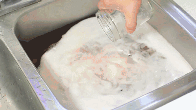 水槽不小心堵了?别着急,将白醋和小苏打按照大约1:1的比例,依次倒入水槽中。