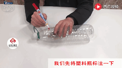 首先将塑料瓶的上半部分做上标记,然后用工具割开。