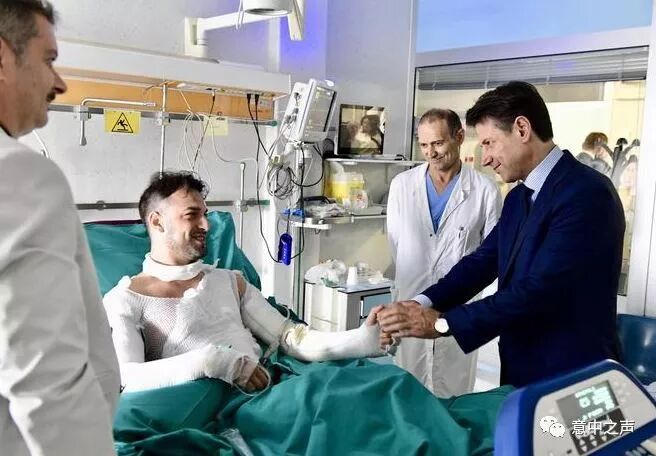 今天上午,意大利总理朱塞佩·孔特(Giuseppe·Conti)亲自前往Bufalini医院看望因博洛尼亚车祸爆炸事故中被烧伤的伤者。目前,有两名意大利人因爆炸而大规模烧伤,所幸没有生命危险。与此同时,孔特乘坐直升飞机亲自前往事故路段桥梁崩塌地点。