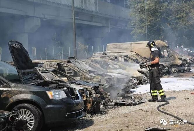 今天周一(8月6日),意大利博洛尼亚(Bologna)机场附近A14高速公路上2车相撞(其中一辆是运载着可燃性材料的大罐车)发生大爆炸,火球升上半空,喷出大量黑烟。