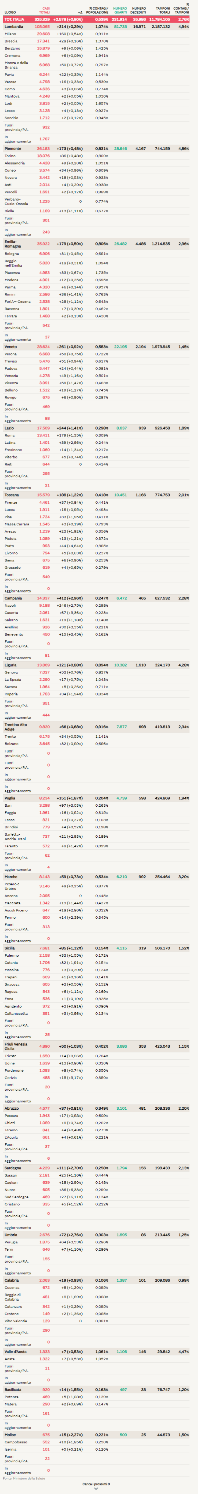 Pisa是受打击最大的省,有61例阳性患者,排在第二位的是Firenze。在一天之内,Firenze就进行了近9000次核酸检测,为6个月前的2倍之多。专家们认为当前形势要求我们继续保持高度警惕,但没有必要感到恐慌。