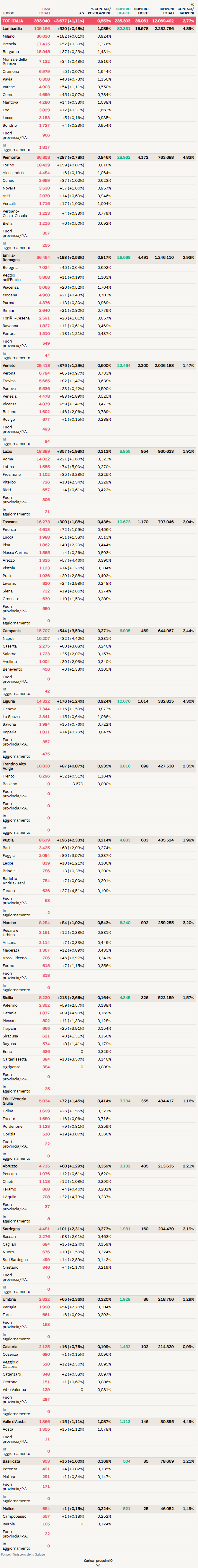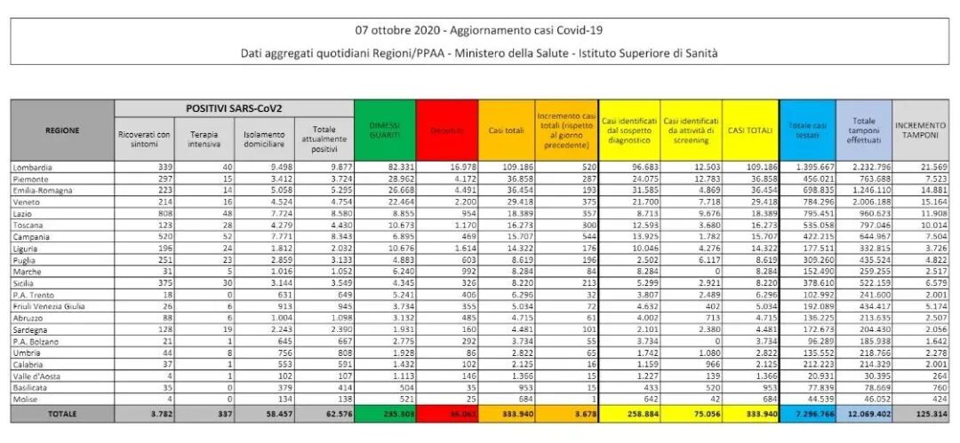 意大利确诊数据:累计确诊333.940人,死亡36.061人,治愈235.303人!