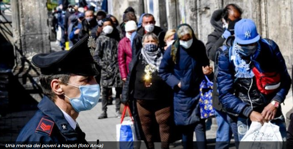 慈善团体Caritas发布报告称2020年在贫困方面意大利所背负的压力大大增加。在3月到5月之间,有45万人不得不向救济中心求助,或者向社区教堂求助,其中有45%的人是第一次这么做。疫情造成了很多新增的贫困人口,越来越多的人收入却锐减,甚至不得不停工没有收入。