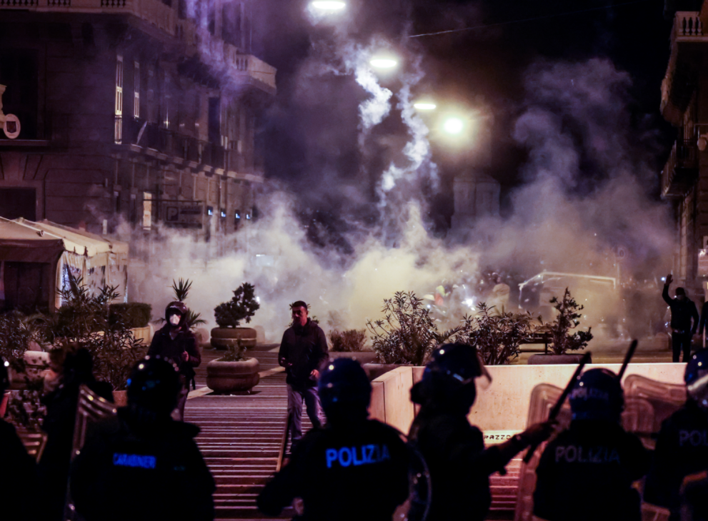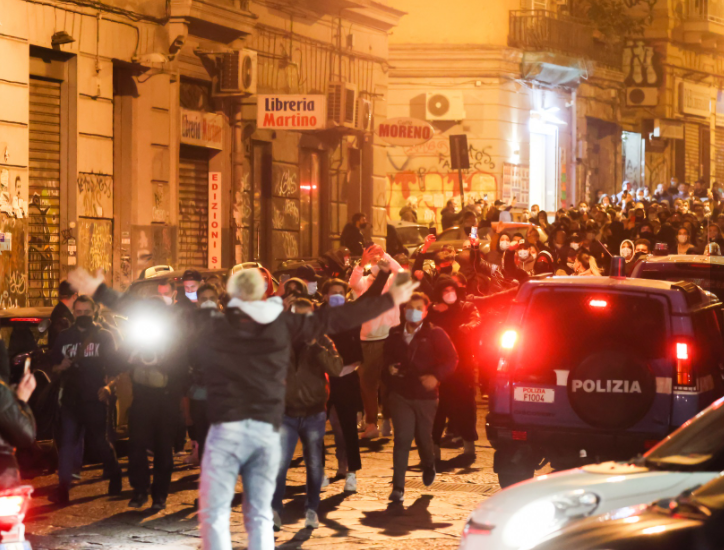 最开始的紧张局势始于10月23日星期五晚上23点左右,Campania地区为阻止冠状病毒感染而实施的夜间封锁之时。大区主席De Luca的宣布将实施新的措施,封城30至40天,以阻止病毒的传播,因此加剧了抗议活动。