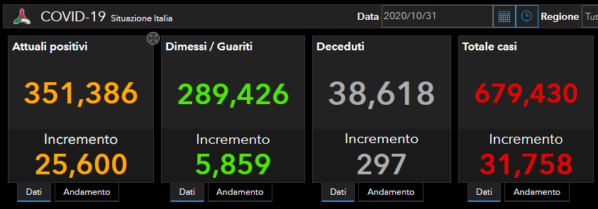 意大利确诊数据:累计确诊679.430人,死亡38.618人,治愈289.426人