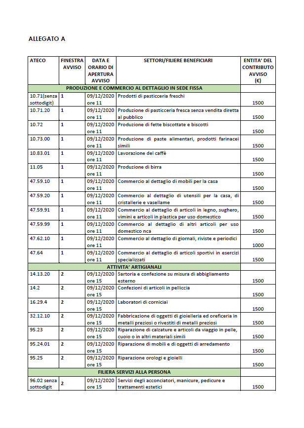 根据大区最新法令,为给予在疫情期间经济收到严重影响的公司/企业补助,LOMBARDIA 大区更新并增加了可申请此次补贴的行业。补贴发放金额根据行业分类从 1000欧元 至 2000欧元不等。