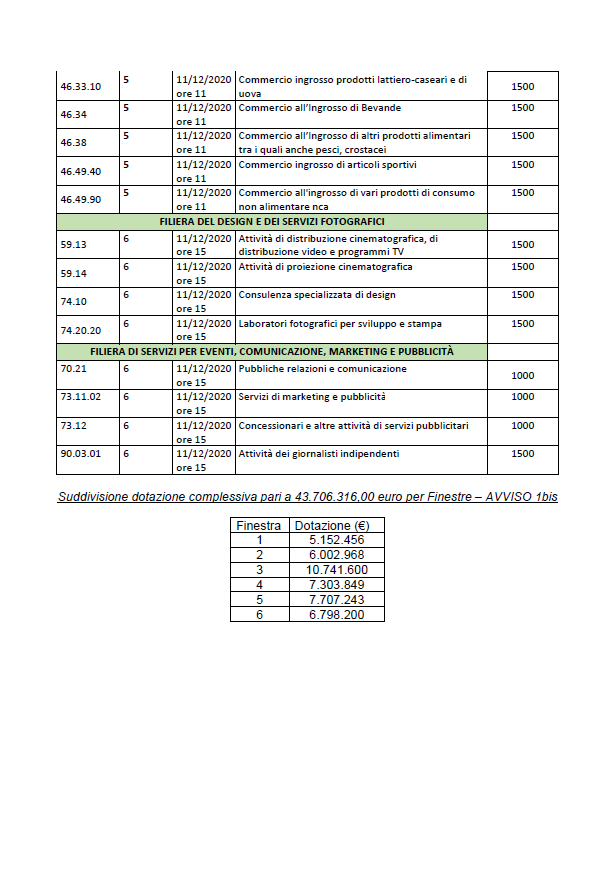 从12月9日开始,可通过 LOMBARDIA 大区网站,递交申请。每个行业申请的时间都有不同!(详情请查看下方图片)