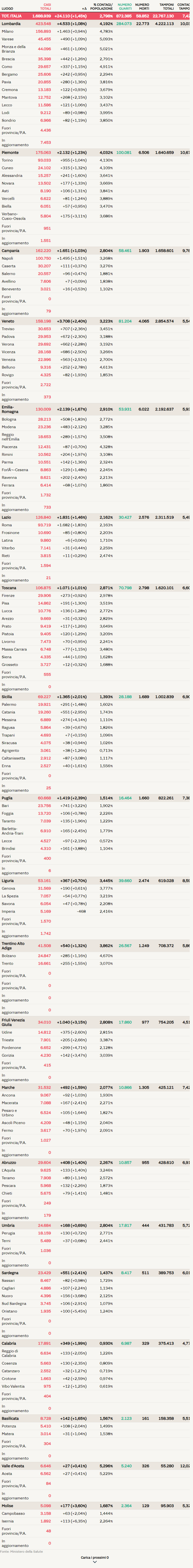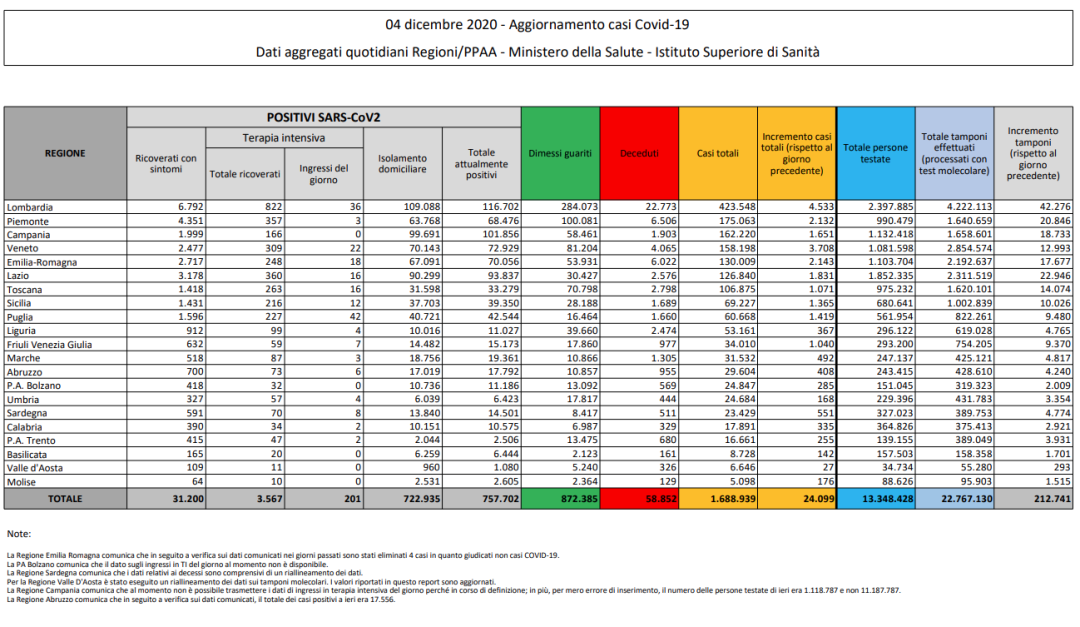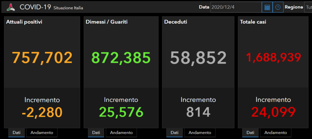 意大利确诊数据:累计确诊1.688.939人,死亡58.852人,治愈872,385人!