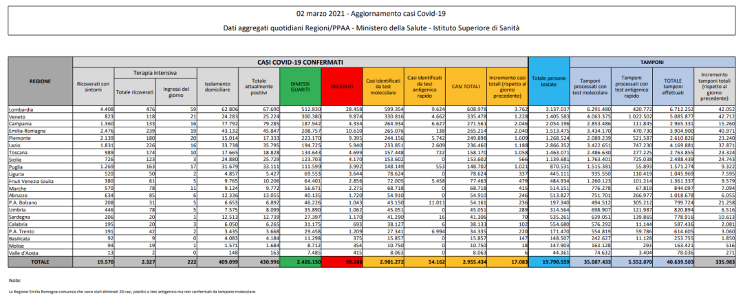 意大利确诊数据:累计确诊2.955.434人, 死亡98.288人, 治愈2.426.150人!