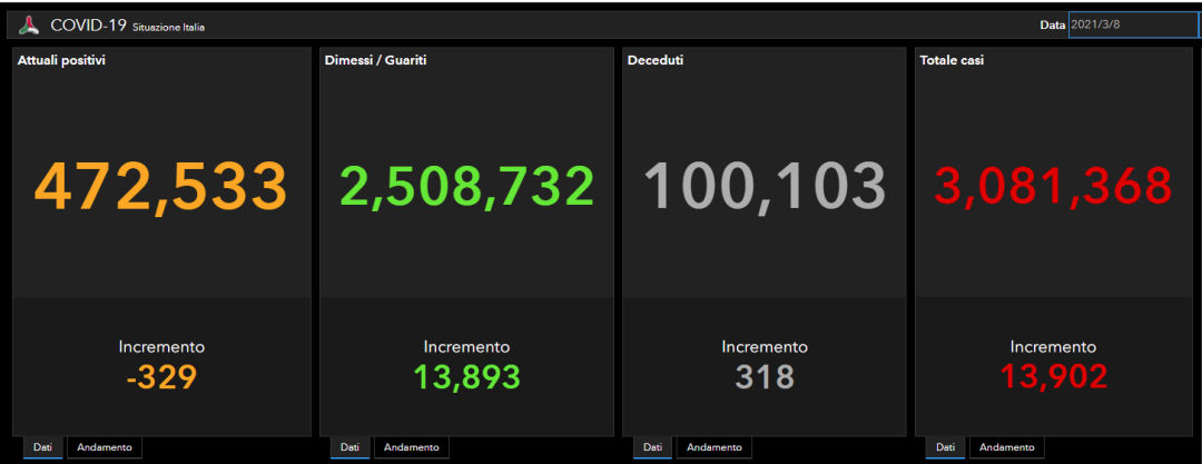 意大利确诊数据:累计确诊3.081.368人, 死亡100.103人, 治愈2.508.732人!