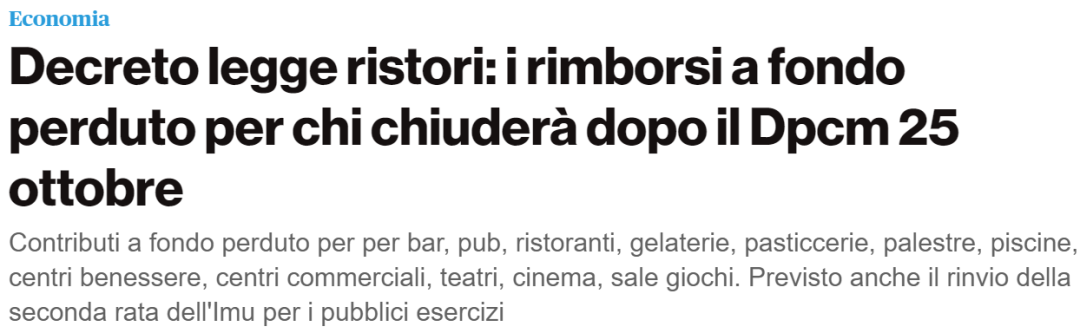 注:在这次新规被限的行业造成了损失,政府之后将会给予一定的补贴(Fondo perduto),关于补贴内容,请关注我们平台,我们将陆续发布!