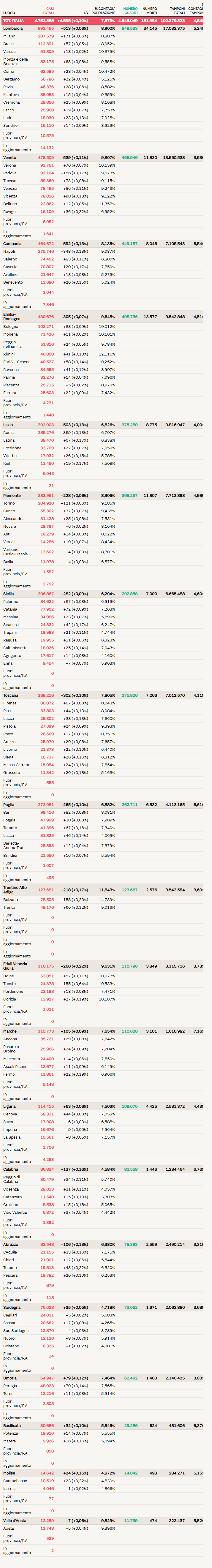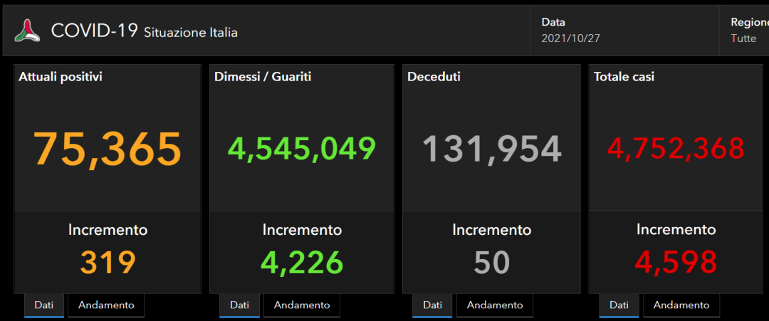 意大利确诊数据:累计确诊4.752.368人, 死亡131.954人, 治愈4.545.049人!