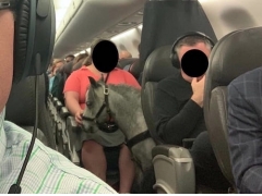 【视频】美国一名患抑郁症的小女孩带着毛驴上飞机