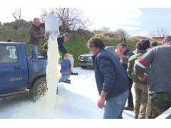 意大利奶农抗议价格过低 在大马路上泼羊奶