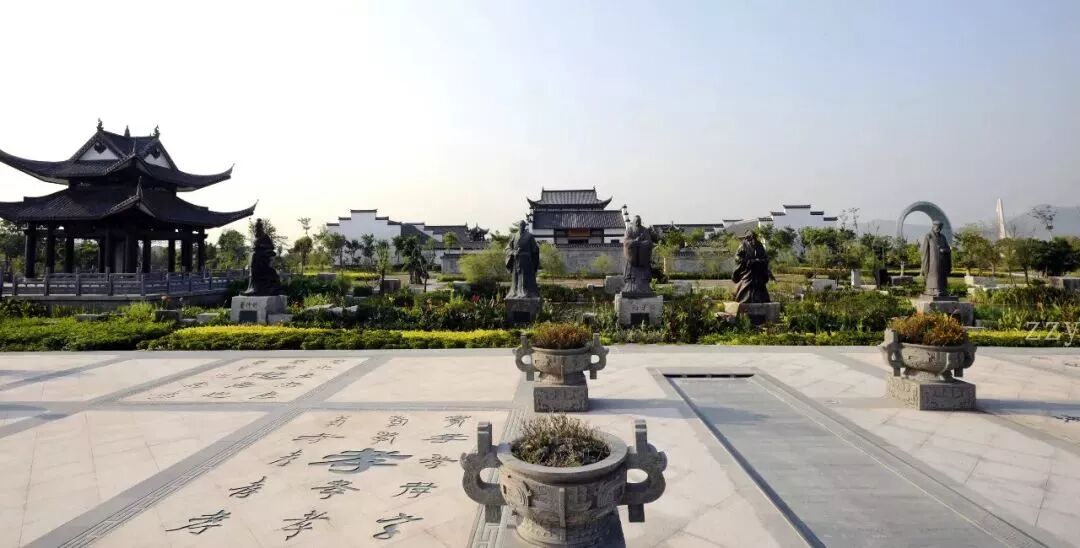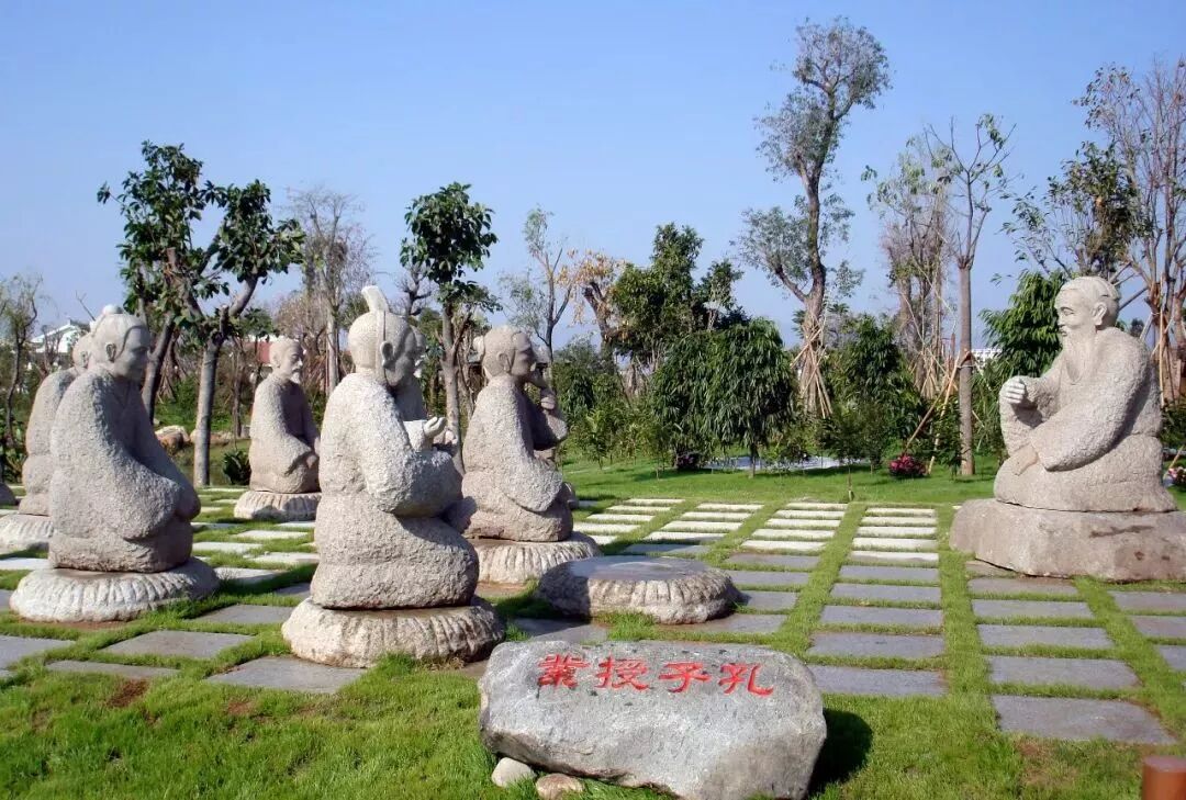 广场上有国内著名雕塑家雕塑的6座圣贤铜像和16座历代教育家铜像