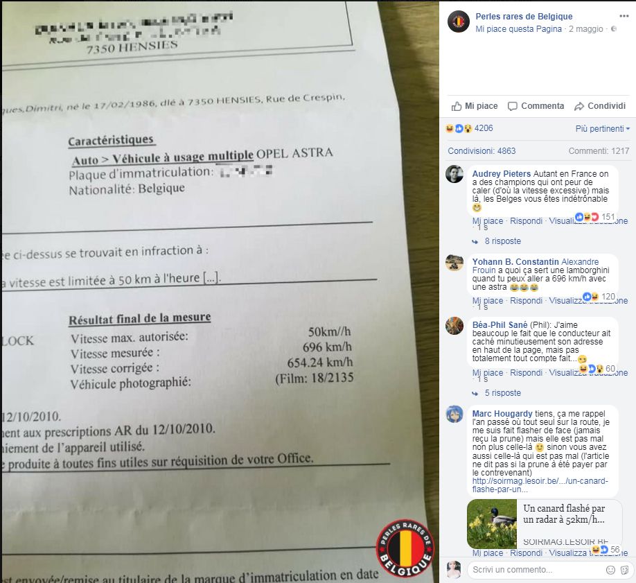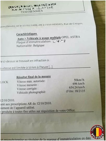 意大利今日网援引《La Province》报消息,这一数据是被当地电子摄像头(Autovelox)拍下的。收到罚单的男子为一名32岁的比利时司机,其在意大利与法国边境的一条通向比利时埃诺省基耶夫兰(Quiévrain)的路上被电子摄像头拍下,电子摄像头记录显示男子驾驶的Opel Astra严重超速,首次测速结果为696公里/小时,“修正后”的结果为654.24公里/小时。