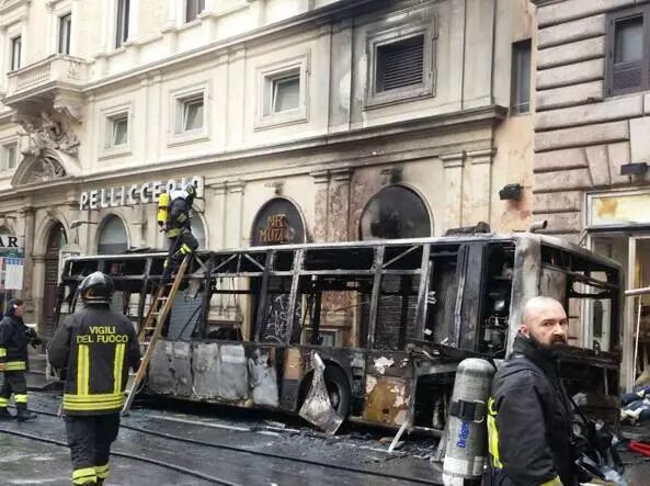 20天前,即4月20日,在距离罗马Termini火车站一步之遥的via Volturno街,一辆16路公交车的后部冒烟起火。4月13日,Via di Portonaccio街同样有一辆公交车被火焰吞噬。