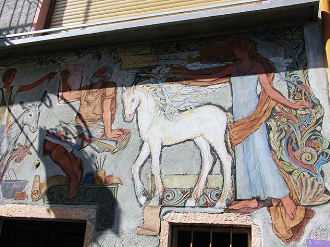 小镇的壁画许多也是出自大师之手,所以阿库梅贾也被称为“画家之乡(Paese dei Pittori)”。在这里不能错过的是“画家之家Casa del Pittore”,里面有布雷拉美术学院组织的一些绘画课程的作品。