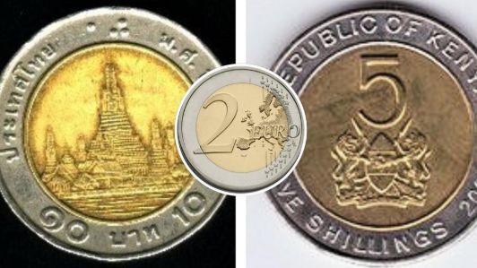 2欧元硬币一面为面值面,另一面为主题图案面。面值面均相同,但主题图案面却因国而异,甚至同一个国家在不同年份发行的硬币主题图案也会不同。正因如此,为外币或假币的浑水摸鱼提供了一定的便利。据警方介绍,目前在意大利境内发现的2欧元假币主要是泰国铢和肯尼亚先令,前者的价值只有25欧分,后者的价值不到20欧分,因为这两种硬币的外形与2欧元极其相似,不少人在拿到硬币时因未仔细辨别就揣进口袋,结果受骗上当。这两种硬币还多次骗过自动售货机,尤其是那些老式售货机根本无法分辨真伪。意大利消费者协会警告店家,一些人甚至用之前的里拉硬币冒充2欧元,已有多人上当。此外,西班牙市面上也曾出现一种和1欧元的图案及大小均十分相像的硬币,事实上这是委内瑞拉的玻利瓦尔币,价值仅9欧分。尽管假币泛滥,真假难辨,但只要仔细辨识还是能加以区分的。关键是看这些硬币能否被磁铁吸住,如果能吸住就是真币。2欧元和1欧元均含有少量的镍,所以可被吸住。