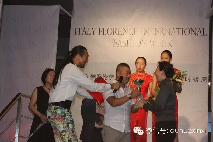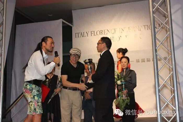 意大利佛罗伦萨(普拉托)第一届国际时装周组委会陈福强先生向王宝元设计师颁发“一带一路 传统文化创意”奖