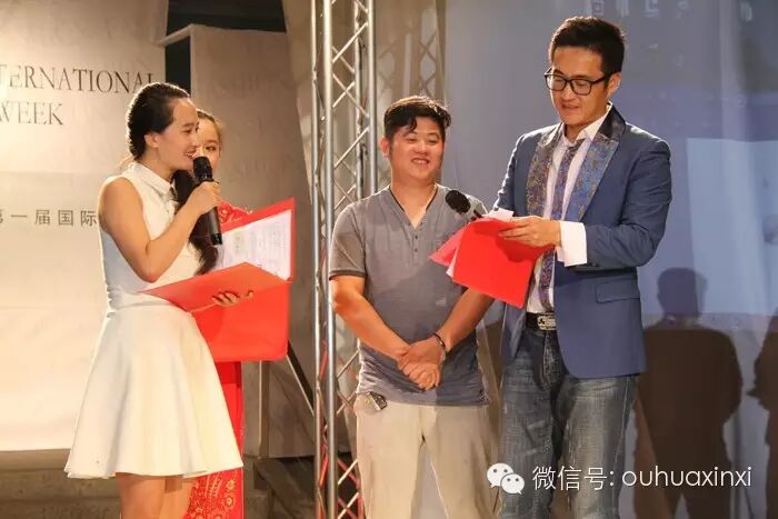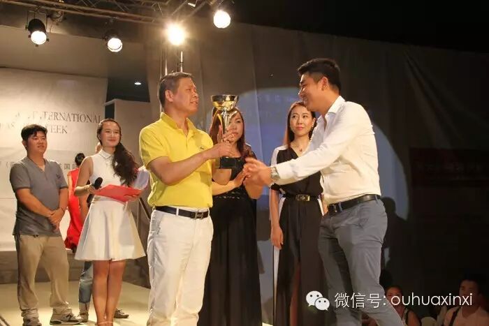 普拉托服装协会理事会主席邱伟为服装大赛季军陈安星颁奖