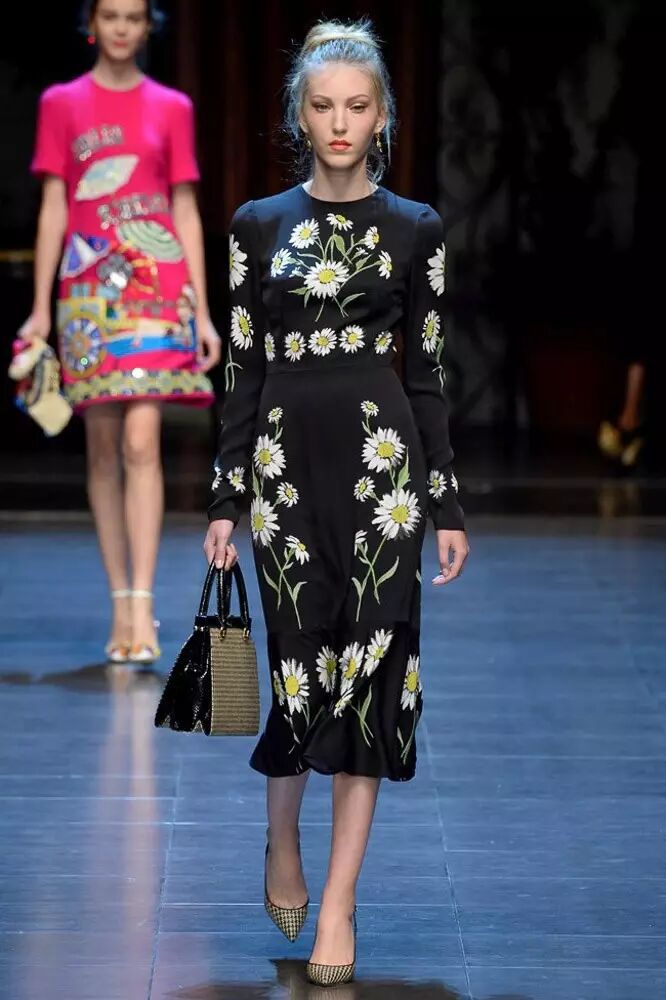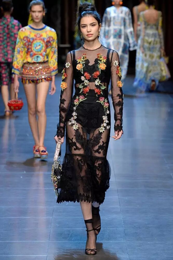 意大利到底有多美?或许可以从Dolce&Gabbana 2016春夏系列中全然感受到。本季,两位设计师向历史悠久的故乡意大利致敬,随处可见的“Italy is Love”标语,将典型的意式西西里水果摊、小酒馆置于秀场内,连菜单都将意大利美食与时装相结合,独到的新意与情怀让人仿佛置身在这美丽的国度。Dolce&Gabbana标志性蕾丝、印花与闪烁金饰穿插出现在T台上,包裹在头上的丝巾、印绣着五颜六色的手绘真丝长裙与短裙飘逸精致,花卉、水墨甚至水果跳跃在耳环、长裙、套装上,模特们犹如到意大利旅行的时髦游客,穿着浪漫印花蕾丝裙拿起手机自拍,温馨甜蜜的画面让人置身于这片美丽的土地上,令人动情至深。