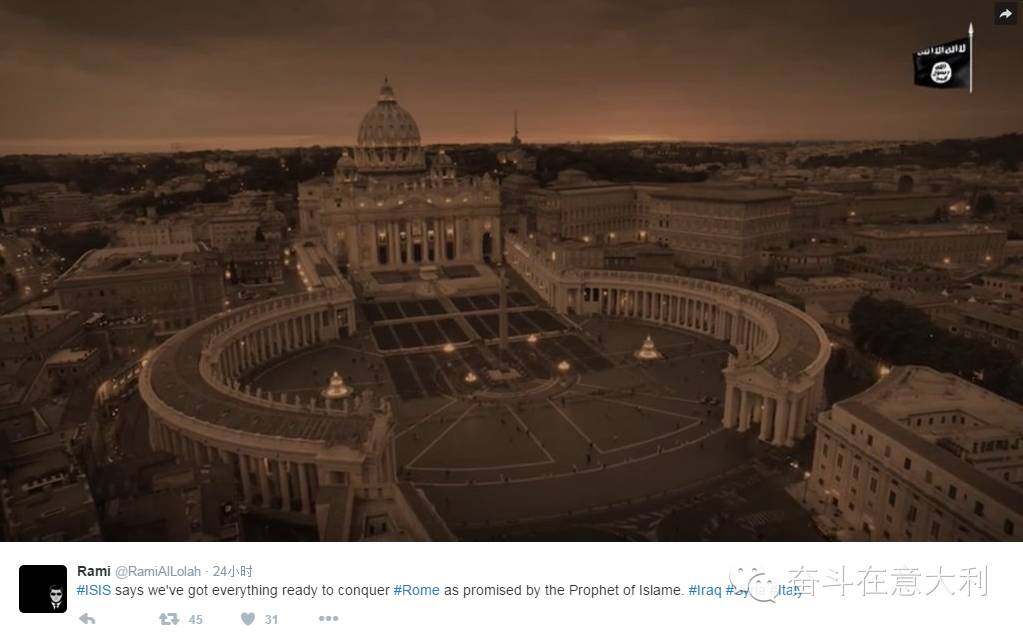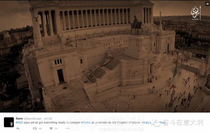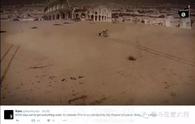 据意大利共和国报12月11号报道:在is发布的最新的海报中,有一张把罗马作为目标的海报。有三辆插着isis旗子的坦克向着背景为罗马斗兽场,梵蒂冈的圣彼得大教堂的方向全速前进。