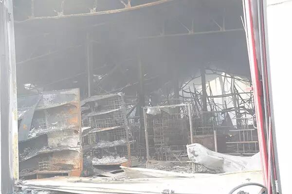 货架店里被烧,还有明火在冒烟