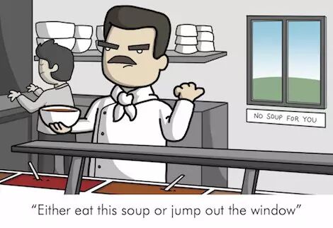 字面意思:要么喝掉这碗汤,要么跳出这扇窗。