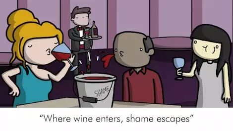 字面意思:葡萄酒进入之处即羞耻逃脱之处。