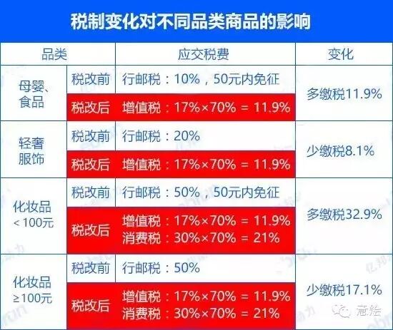 而从买家、甚至是卖家(比如海淘、代购)来看,传说中的新税改带来的也绝不仅仅是商品涨价这一个结果!