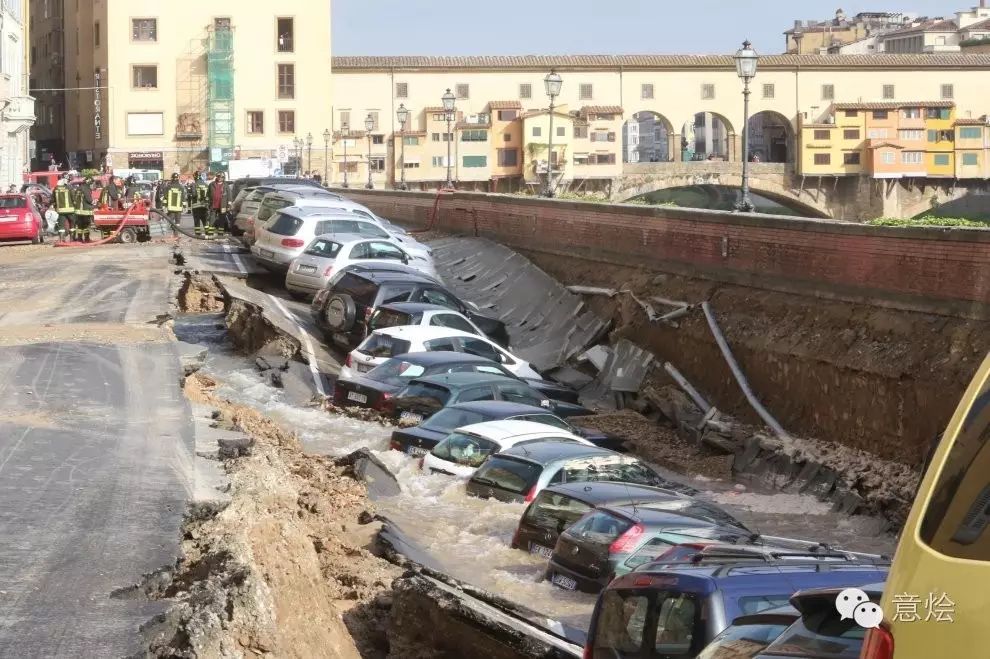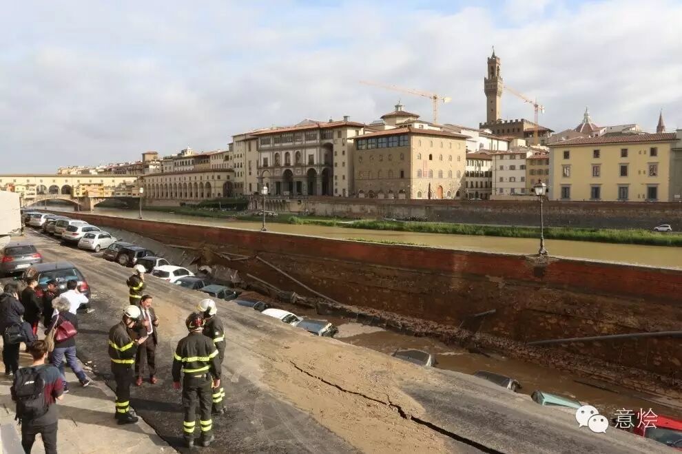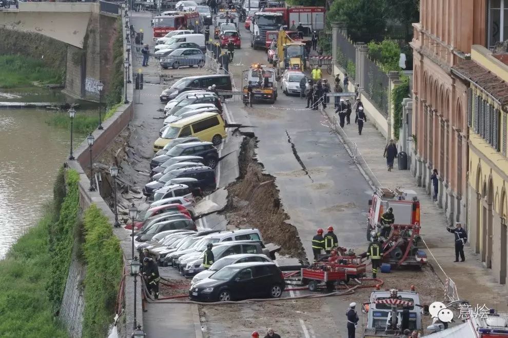 综合安莎社、《共和国报》5月25日报道,佛罗伦萨市中心,位于老桥和恩宠桥之间Lungarno Torrigiano路发生了塌方,并出现了长达200米、宽7米、深3.5米的鸿沟。坍塌发生在5月25日早晨6:30左右,大约有20辆左右停放的汽车受到坍塌影响。消防队表示,无人因此而受伤。