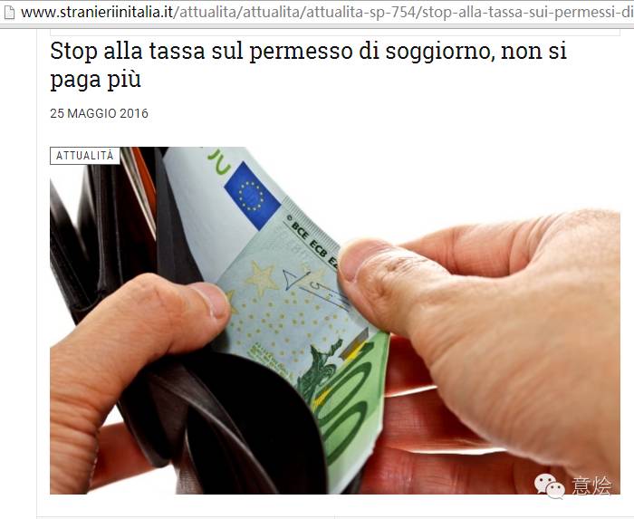 从现在开始,移民不再需要支付居留税,但意政府执意要求移民缴纳16欧的印花税和30.46欧的制卡费以及30欧的邮局服务费,(共76.46欧)。