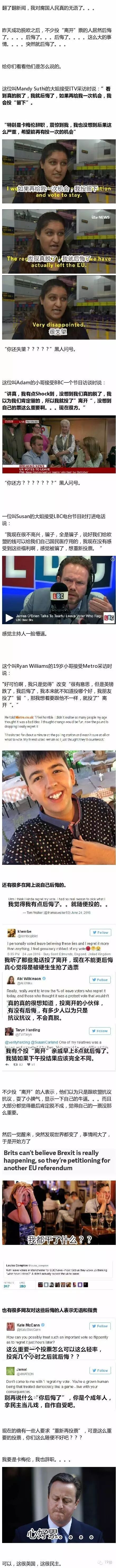 一些投离开的英国人一觉醒来就后悔了,我也是醉了,这么大的事,这么随便不好吧......