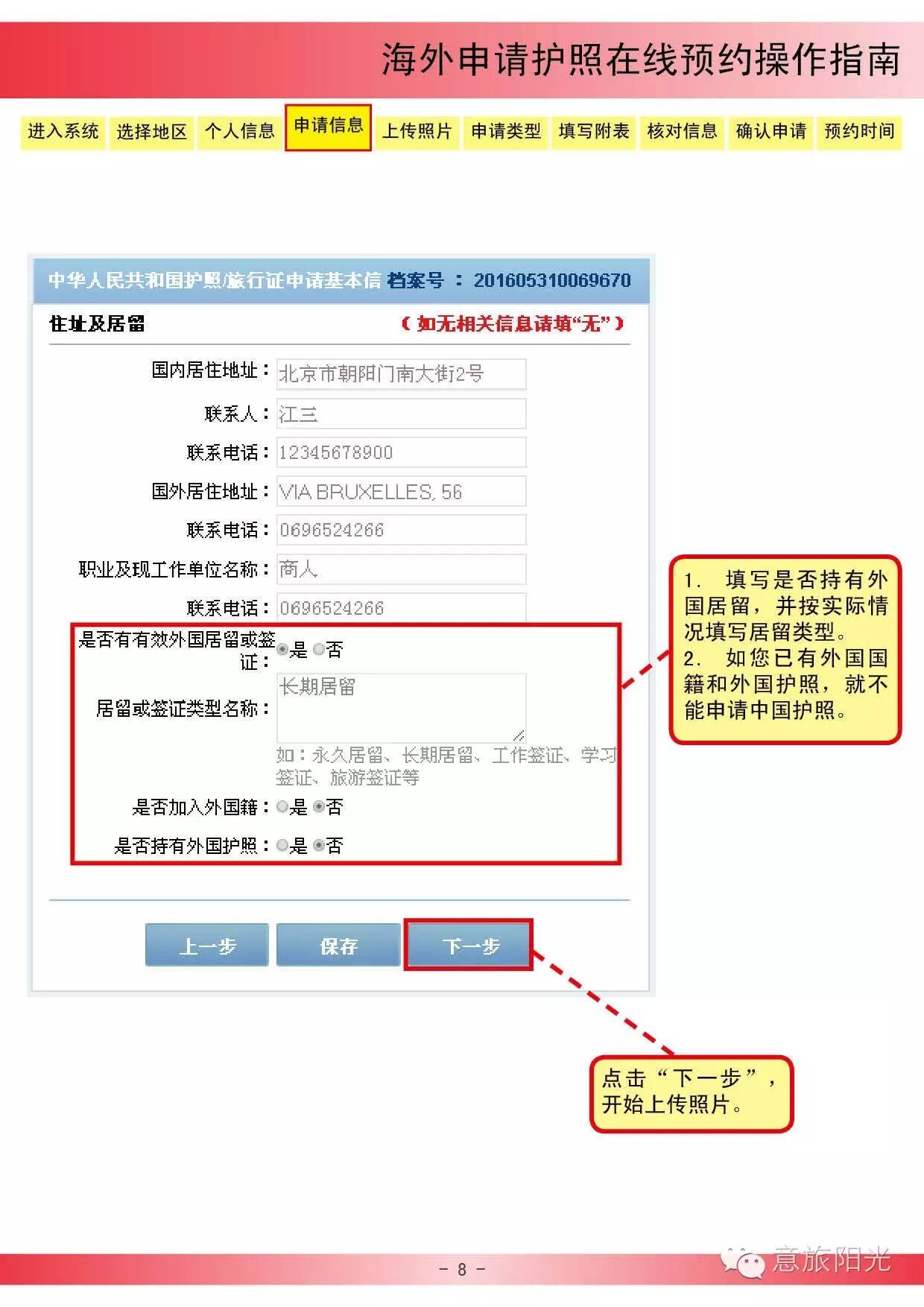 完成预约后,您需携带打印好的申请表,以及照片、护照和居留的原件、复印件等材料,按预约时间到场递交,在领事官员面前签字,并录入您的指纹、签名等个人生物信息。
