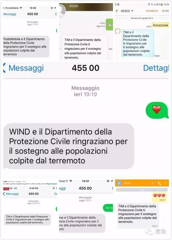 不断上升的伤亡数字也不断的牵动着所有人的心。Tim、Wind、Vodafon、Tre、Fastweb、Coopvoce、Insfostrada等通讯运营商共同开通了一个可以为地震灾区捐款的号码:45500