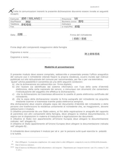复印所有文件并用邮局的raccomandata寄给Comune,一定要用raccomandata(挂号信)普通邮寄或者快递不行。