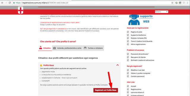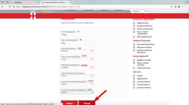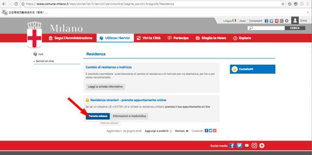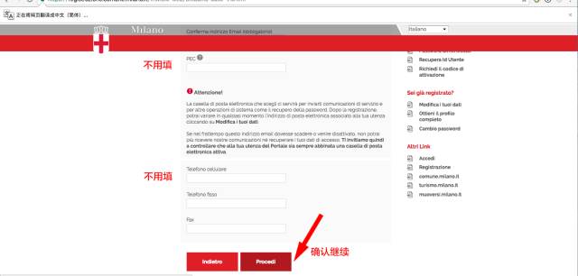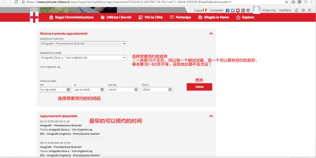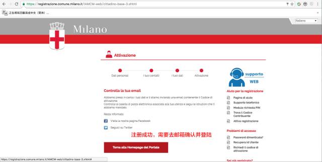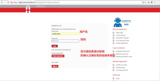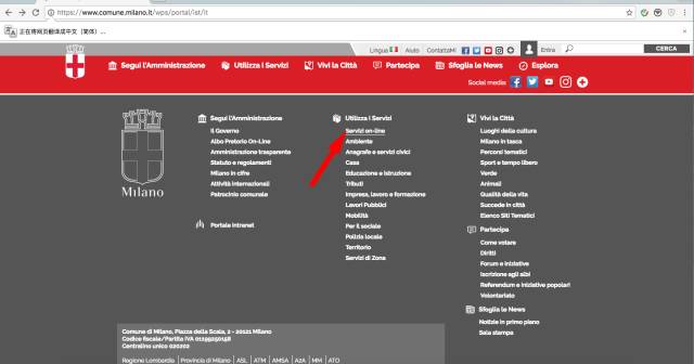 Google搜索Comune di Milano,进入米兰政府的官网,新用户要注册。