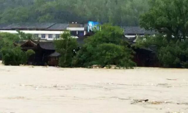 洪水围困姐妹桥,岌岌可危。其他地方仍有多座古廊桥距水面不足两米。