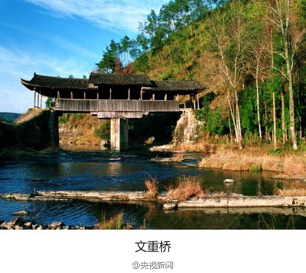 文重桥,又名东洋桥,位于筱村镇东洋村水尾,始建于清乾隆十年(1745年),屡建屡毁,民国10年(1921年)重建,为伸臂梁木平廊桥。