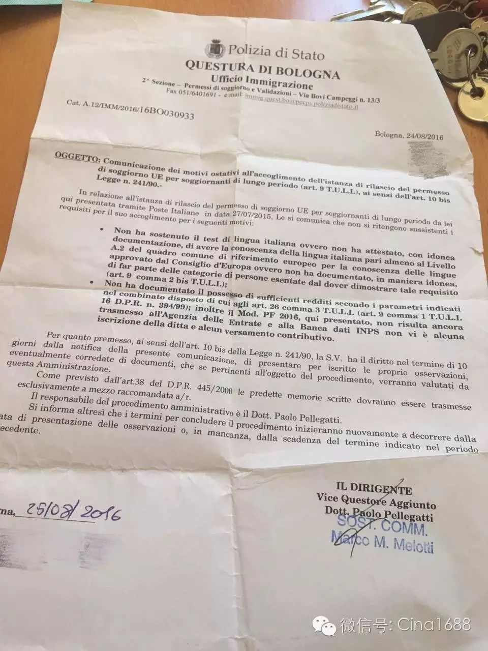 近日来,关于中国同胞续长期的也越来越多了,报工有些是买的包括证书,身份证也有些部分也是借登的,大家也是知道的,现在的意大利人也越来越讨厌我们中国人,现在呢也有些警察局审核材料也是比较严的,关于普通居留也是,审核不像以前那么简单,以前有些胆子大点的,邮局寄完居留第二天就吩咐老板割工的也是多有人在的,现在劝大家别走这不寻常路,免得惹来一身官司,赔了夫人又折兵。