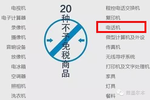 根据海关总署2010年第54号公告规定,规定20种商品不予免税。