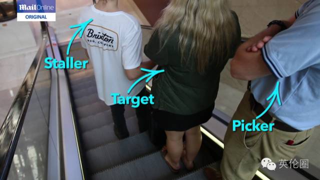 通常情况下是两人行动,在扶梯里一前一后的把你夹在中间。