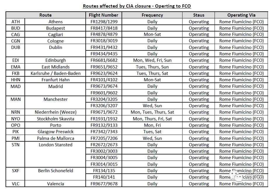 (提醒)罗马钱皮诺机场将关闭15天,所有航班转至菲乌米奇诺机场!