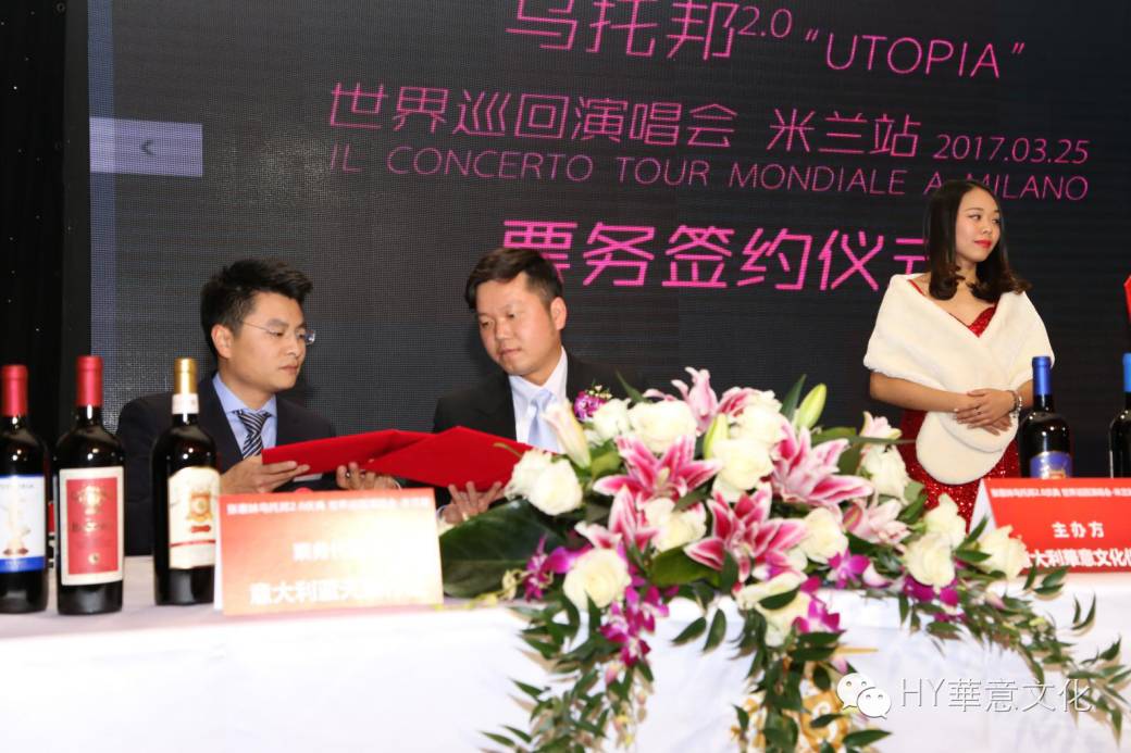 主办方华意文化传播与票务代理方蓝天旅行社 进行票务签约仪式 |