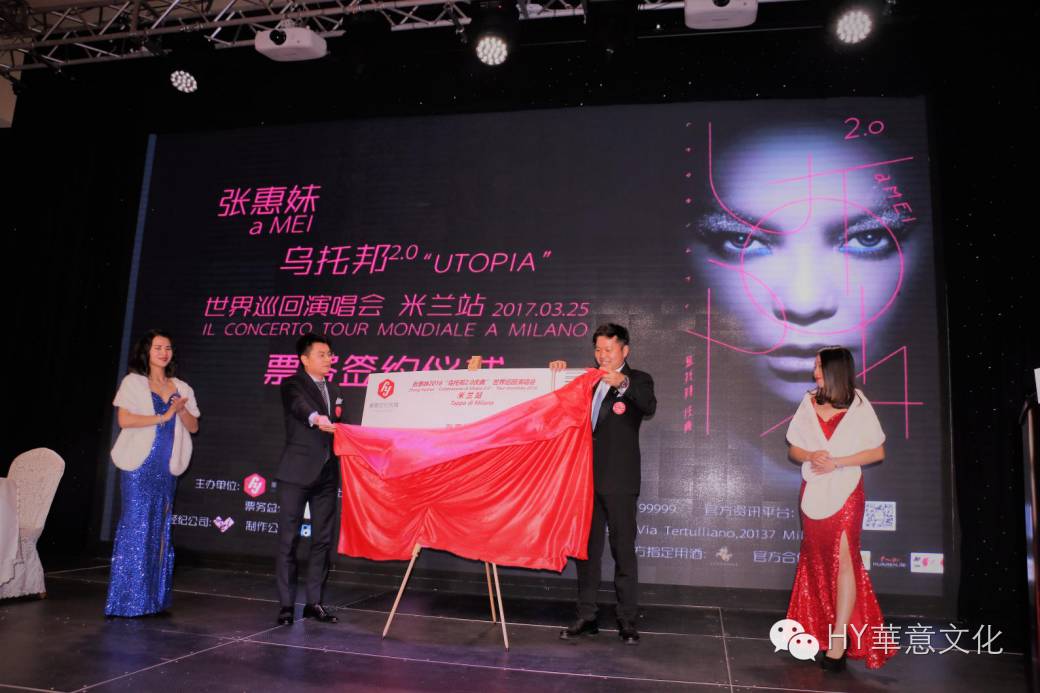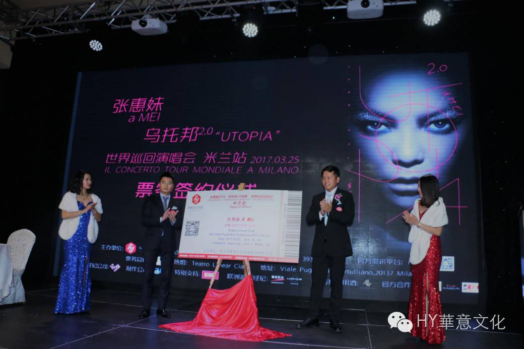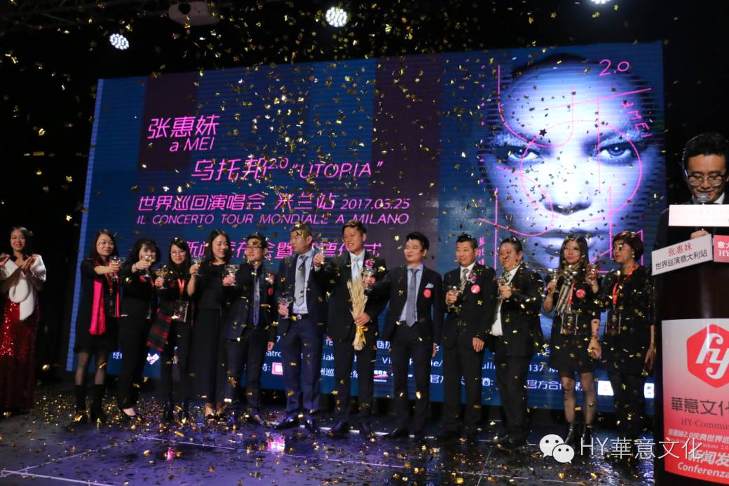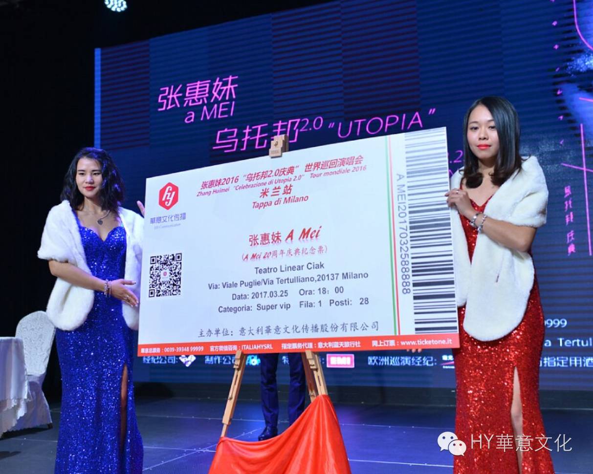 11月19日由意大利华意文化传播公司主办及全程策划运营的 《张惠妹乌托邦2.0庆典世界巡回演唱会米兰站》在米兰举行了新闻发布会暨开票仪式。本次新闻发布会特别感谢意大利8090文化传媒和媒体朋友们,以及出席活动的华商代表和全意各地的阿妹歌迷朋友们。