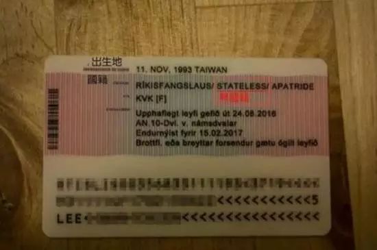 台湾东森新闻云11月19日报道,许多台湾人到“国外”会面临“国籍问题”,日前,一名李姓女网友到冰岛当交换学生,对居留证上的“CHINESE”十分在意,花了3个月时间和当地移民署交涉,最后ID被改为“无国籍”(STATELESS),且出生地从“高雄”变“台湾”,让她无奈表示“应该可以勉强算我成功一半吧?”