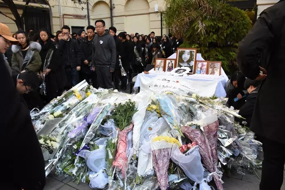 12月12日,罗马美院停课一天举行悼念张瑶。当天12点半左右,许多留学生配带着白花、捧着菊花,到张瑶同学生前学习的罗马美院悼念。同学们神情凝重、心情沉重。“反暴力、要安全”是每一个留学生和华侨华人的心声。我们期望警方尽早破案。