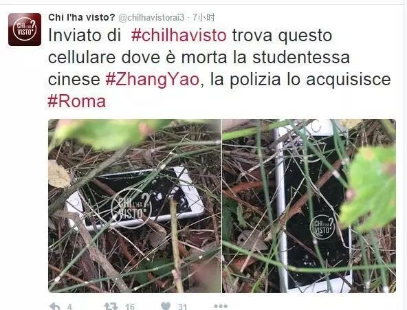 12月11日,一名意大利国家电视台记者进入事发现场发现了张瑶的手机,并交给警方。