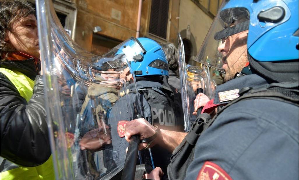 当地时间2017年2月21日,意大利罗马,当地出租车司机组织罢工,示威者与警察冲突。(掌上意大利)